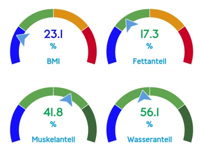 Die Ergebnisse des Köperwasseranteils weichen noch stärker ab und können nicht stimmen, sonst läge ich schon völlig ausgetrocknet am Tropf!