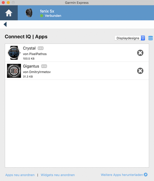 Die Auswahl dieses Watch Faces erfolgt im IQ Store, Download und Installation erfolgen über Garmin Express. Gleiches gilt für die Konfiguration.