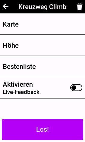 - Über den "Los!" Button lässt sich eine Route zum Startpunkt eines Segments berechnen.