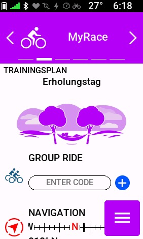 Über den neuen Widget "Group Ride" auf der Startseite lässt sich jetzt eine Gruppenfahrt erstellen und mit einer Strecke verknüpfen, die alle Teilnehmerinnen und Teilnehmer durch das Eingeben eines Codes laden können.