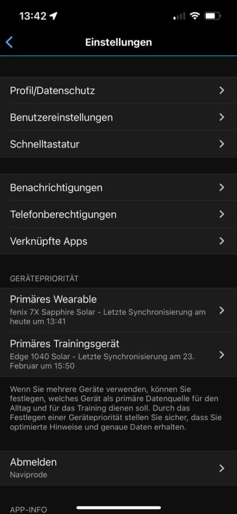 In der Connect App lassen sich nun ein primäres Wearable und ein primäres Trainingsgerät festlegen (in den Einstellungen der App zu finden). Diese Option ist aber nur für Nutzerinnen und Nutzer von mehreren Garmin-Geräten interessant.