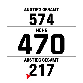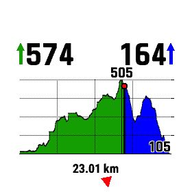 • Höhenprofil: Beispiel siehe oben, Trainingsseite (3) (empfehlenswert, an Stelle von ClimbPro)