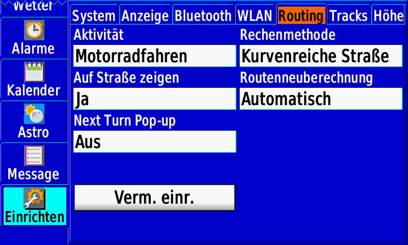 - Navigationsoptionen: Nüvi Modus, Text-to-Speech, Active Routing, Curvy Roads etc.