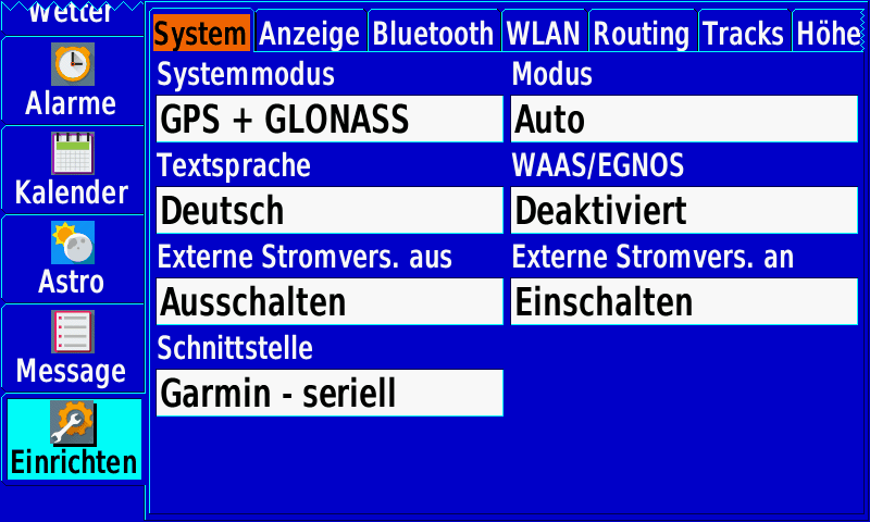 Garmin GPSMAP 276Cx: Screenshots Einstellungen