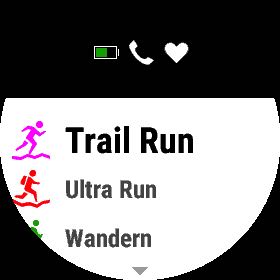 In der jeweiligen Aktivität – z.B. Trail Run – können Sie via "Navigation > Strecken" eine Strecke öffnen und mit "Strecke starten" zum Navigieren einsetzen. Vorab lässt sich die Strecke mit den Funktionen "Karte", "Höhenprofil" und "Anstiege anzeigen" nochmals checken.