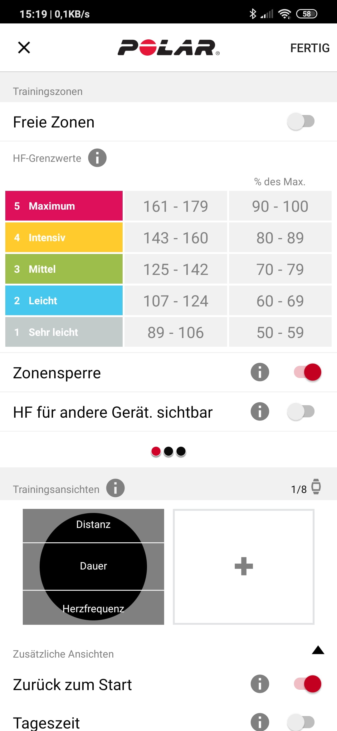 - Intensität auf der Basis der Herzfrequenz-Zonen einstellen, z.B. "Zone 3 mittel".