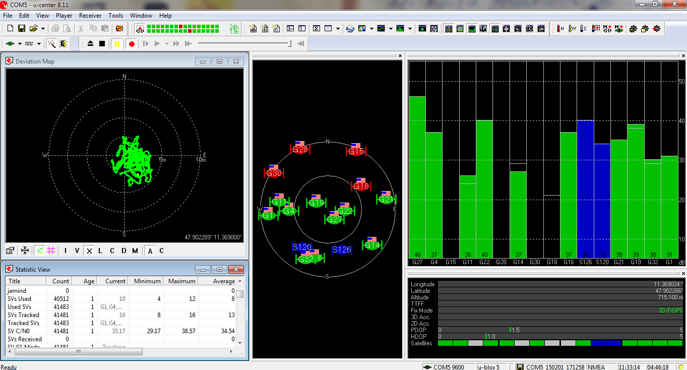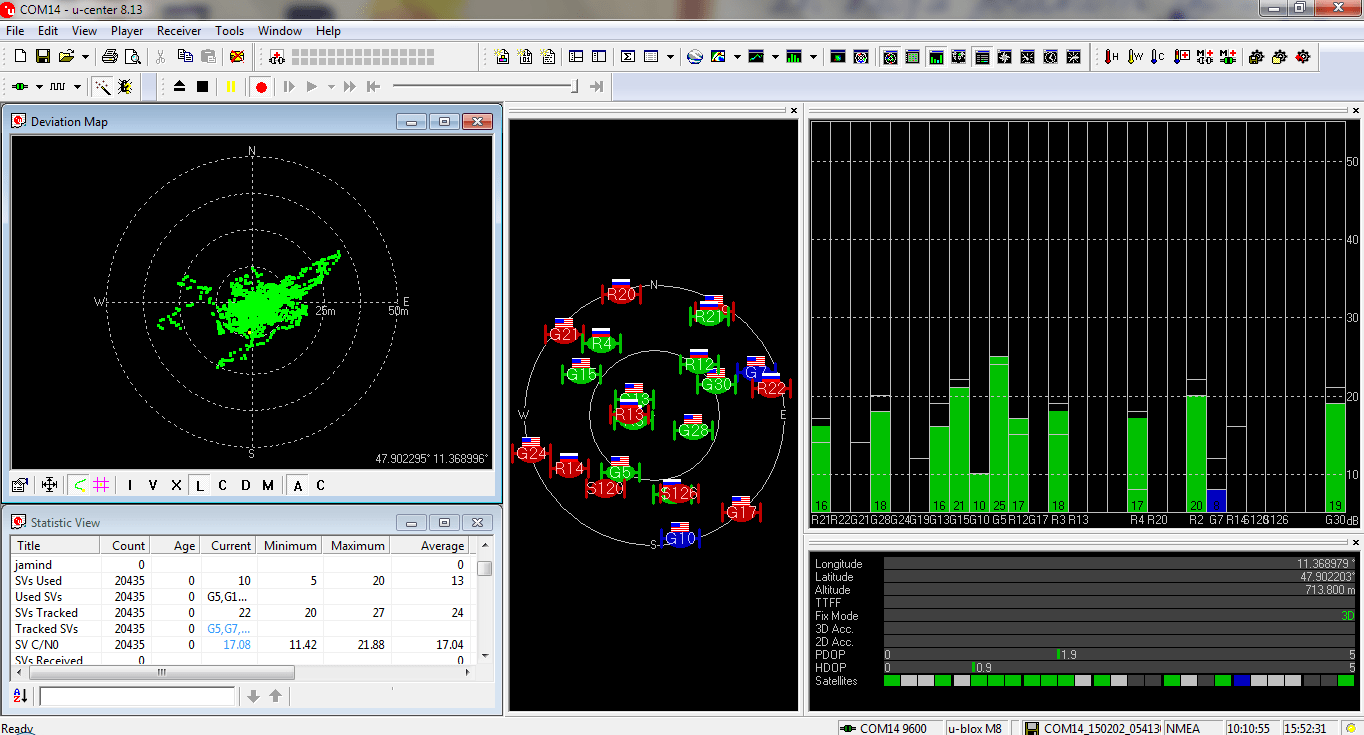 In dem bislang verwendeten Navilock NL-402U GPS/Galileo-Empfänger ist ein u-blox 5 Chip verbaut, der zur Positionsbestimmung GPS und Galileo Satelliten heranziehen kann. Da Galileo aber noch nicht zur Verfügung steht, ist das amerikanische GPS das ausschließlich genutzte System.